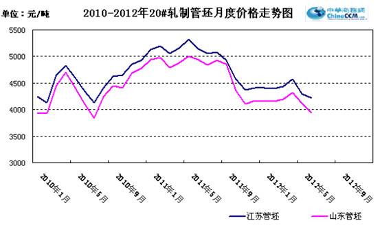 受需求不足的影響,六月份國內無縫管市場依然未擺脫下跌行情,不過跌勢趨緩。企業合同普遍不足,月底時山東地區熱軋小管出廠報價4500元/噸,而管坯到廠價格維持在4100元/噸左右(承兌),山東小企業虧損依然比較普遍。雖然七月份市場需求依舊低迷,但受制于成本阻力影響,七月份的跌勢將繼續趨緩,僅是受鋼材大環境低迷的拖累,保持慣性下跌的態勢。