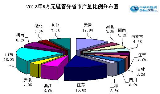 6月份國內無縫管產量超過10萬噸的地區有七個,分別是山東、江蘇、天津、河南、浙江、內蒙和湖南。6月份25個主產區中有11個地區環比5月份減產,減產地區近半數,累計環比5月減產11.8萬噸,其中湖北地區減產3.5萬噸,占累計減產量的29.7%。14個主產區環比5月產量有所增加,累計增產19.7萬噸。(參見:圖一、圖二)
