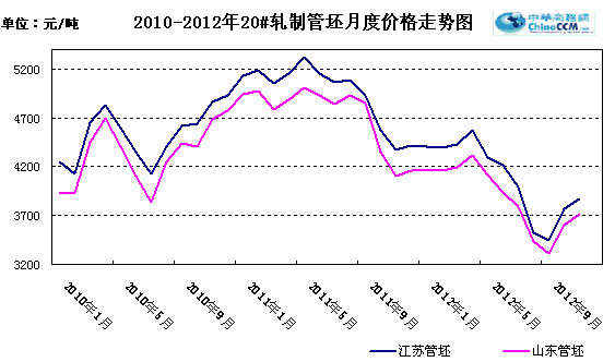 11月江蘇20#軋制管坯月均報價3871元/噸,和上月月均報價相比上漲100元/噸,山東20#軋制管坯報價3718元/噸,比上月月均報價上漲了116元/噸。分時間段來看,上旬管坯價格小幅走高,中旬維穩觀望,下旬小幅下挫。作為冶金原料之一的鐵礦石價格波動下行,現京唐港進口的63.5%的印度粉礦855-865元/噸,原材料價格的小幅走低,使管坯價格上漲動力明顯不足,觀望情緒濃重。從其下游來看,無縫管市場價格雖有小幅拉漲,但隨著淡季的來臨市場成交逐漸萎縮,市場價格已有小幅走低的趨勢,對管坯價格并無拉動作用。因成本價格價格波動下行,再加上剛性需求持續萎縮,管坯價格穩中小幅下探的可能性較大,對12月份的價格看跌。