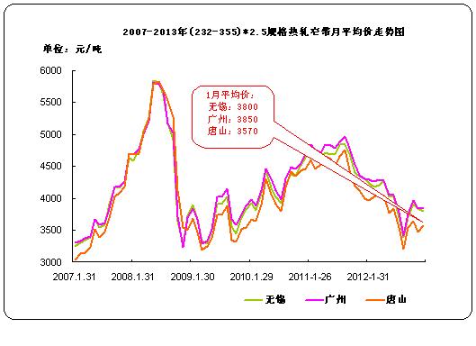 | 2013年1月 | 3750 | 3580 | 3570 | 3800 |