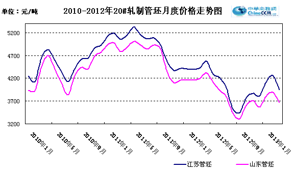 3月江蘇20#軋制管坯月均報價3946元/噸,和上月月均報價相比下調315元/噸,山東20#軋制管坯報價3666元/噸,比上月月均報價下調226元/噸。分時間段來看,上旬管坯價格大幅走低,中旬跌勢繼續,下旬穩中小幅下探。作為冶金原料之一的鐵礦石價格持續小跌,現京唐港進口的63.5%品味的印度粉礦960-970元/噸,鐵礦石價格的趨弱對鋼材價格的支撐力度明顯減弱。從其下游來看,無縫管市場價格處于下跌行情,成交持續不振,貿易商拿貨謹慎,管廠庫存壓力很大,部分民營管廠已有一定幅度的暗降情況出現。原料價格的弱勢,再加上下游需求的低迷,管坯價格上漲動力明顯不足。預計短期內管坯價格觀望為主,繼續下行的可能性很大。