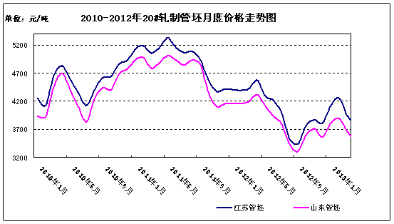 4月江蘇20#軋制管坯月均報價3792元/噸,和上月月均報價相比下調150元/噸左右,山東20#軋制管坯報價3526元/噸,比上月月均報價下調140元/噸。分時間段來看,上旬管坯價格持續下行,中旬出現小幅上調的趨勢,下旬繼續下行。