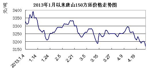 就原料走勢來看,四月份國內企業礦粉采購價格較三月份有小幅下降,下降10元/噸。焦炭采購價格較三月份降50元/噸。在原料成本弱勢下跌的情況下,五月份國內鋼坯若沒有下游需求轉好的支撐,仍將繼續維持慣性震蕩下跌行情。