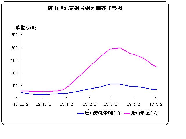 圖2 唐山熱軋帶鋼及鋼坯庫存走勢