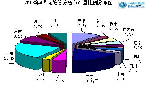 4月份國內(nèi)無縫管產(chǎn)量超過10萬噸的地區(qū)有八個(gè),分別是江蘇、山東、天津、河南、浙江、內(nèi)蒙、湖南和湖北,累計(jì)產(chǎn)量占當(dāng)月總產(chǎn)量的77.82%。4月份26個(gè)主產(chǎn)區(qū)中有13個(gè)地區(qū)環(huán)比3月份減產(chǎn),累計(jì)環(huán)比3月減產(chǎn)32.4萬噸,其中浙江地區(qū)減產(chǎn)量最大,減產(chǎn)6.5萬噸,占總減產(chǎn)量的20.06%。13個(gè)主產(chǎn)區(qū)環(huán)比3月產(chǎn)量有所增加,累計(jì)增產(chǎn)118.6萬噸。其中江蘇地區(qū)增產(chǎn)35.8萬噸,占累計(jì)增產(chǎn)30.19%。(參見:圖一、圖二)