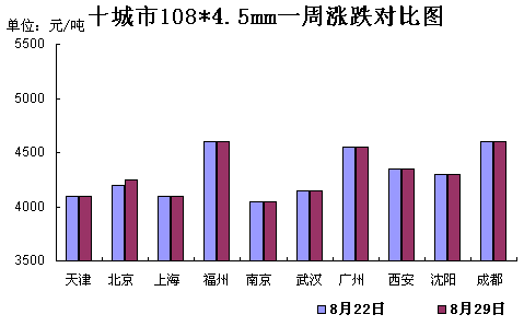 華東地區無縫管市場價格大體維穩,其中上海108*4.5市場價格4100元/噸。成本價格上漲無力,再加上市場成交低迷,貿易商多暫穩售價觀望行情,短期內無縫管市場價格大幅調整的可能性不大。
