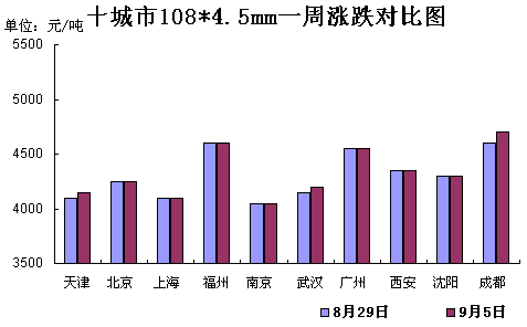 華北地區無縫管市場價格小幅上行,其中天津108*4.5市場價格4150元/噸。本次價格的上行主要是成本價格穩中趨漲,再加上金九的到來,貿易商心態有所好轉,但因市場成交仍然不振,短期內價格大幅調整的可能性不大。