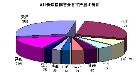 2013年8月份我國焊接鋼管產量444.2萬噸,較上個月增產25.3萬噸,環比增長6%。較去年同期增產21萬噸,同比增加4.96%。本月止累計產量6267.2萬噸,上年同期止累計產量2957.6萬噸,增加309.6萬噸,累計比同期增長10.5%。