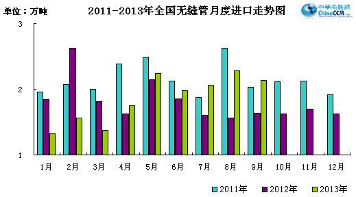 9月份國內無縫管產量262.5萬噸,比去年同期多生產28.1萬噸,同比增長12%。環比8月份增產3.4萬噸,環比增長1.31%。2013年1-9月份國內無縫管累計產量2321.2萬噸,同比增長11%。