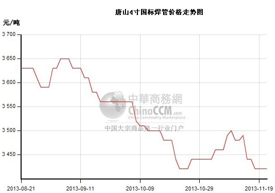 截止11月21日,國內(nèi)十城市1.5寸國標(biāo)焊管均價3687元/噸,較上期跌28元/噸;4寸國標(biāo)焊管均價3680元/噸,較上期跌22元/噸;8寸國標(biāo)焊管均價3812元/噸,較上期跌19元/噸。