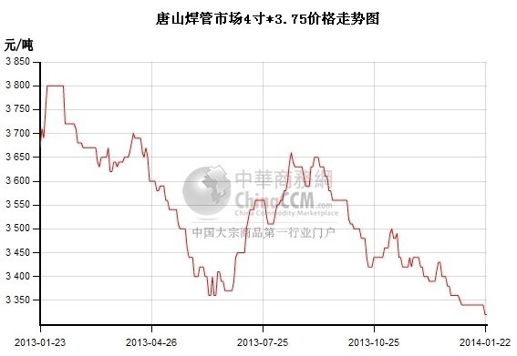 據中華商務網統計數據顯示,截止1月23日,國內十城市1.5寸國標焊管均價3603元/噸,較上期跌11元/噸;4寸國標焊管均價3591元/噸,較上期跌11元/噸;8寸國標焊管均價3746元/噸,較上期跌13元/噸。