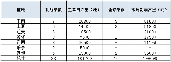 中商網(wǎng)訊: 本周唐山20家232系列帶鋼廠28條帶鋼生產(chǎn)線中,10條帶鋼線檢修或停產(chǎn),影響產(chǎn)量19.81萬噸,產(chǎn)能利用率為64.27%,較上周持平,18條帶鋼線開工生產(chǎn),開工率64.29%,較上周持穩(wěn)。