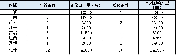 中商網訊:本周唐山18家145帶鋼廠22條帶鋼線中,10條檢修或停產,影響產量1.45萬噸,產能利用率為57.27%,較上周上漲1.67%,12條帶鋼線正常生產,開工率為54.55%,較上周下降4.55%。