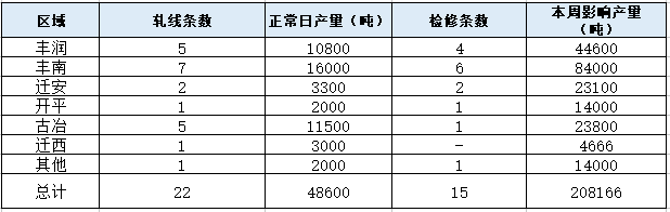 中商網訊:本周唐山18家145帶鋼廠22條帶鋼線中,15條檢修或停產,影響產量20.82萬噸,產能利用率為38.81%,較上周上漲4.23%,7條帶鋼線正常生產,開工率為31.82%,較上周上漲4.54%