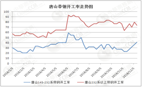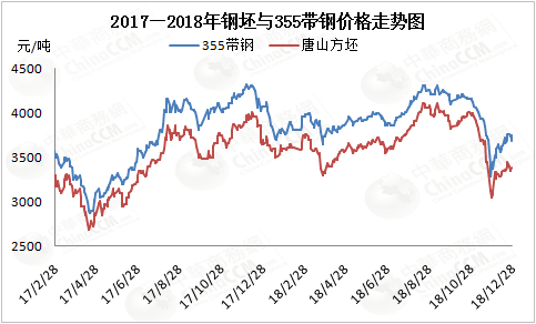 2018年帶鋼先揚后抑,3月15日采暖季限產結束后,唐山地區高爐復產將按各鋼廠生產計劃進行,產能將逐步釋放,然大部分鋼企后期將按照文件在非取暖季期間執行10-15%的限產比例繼續限產。進入四月隨著實際需求的釋放,成品材價格低位回暖及鋼坯整體庫存消化速度進一步加快,對鋼坯價格形成利好支撐,從3月底4月初的低點開始震蕩走強,這與鋼坯的走勢也是相符的。帶鋼價格的轉折點在第四季度,伴隨冷空氣的入侵,帶鋼下游部分需求出現大幅萎縮現象。表現最為明顯的便是與唐山355規格帶鋼關聯較為密切的鍍鋅帶、鍍鋅管、焊管市場,勝芳鍍鋅帶訂單逐漸萎縮,部分企業難抵成本,選擇減產和停產觀望,受中美貿易戰影響,終端出口訂單減少,這就加劇了需求的萎縮。且今年供暖季限產不再一刀切,由于鋼廠根據自身情況制定的停、限產計劃或許并不集中,導致市場表象整體開工率階段性的出現降幅放緩甚至小幅回升,因此帶鋼價格快速回落。