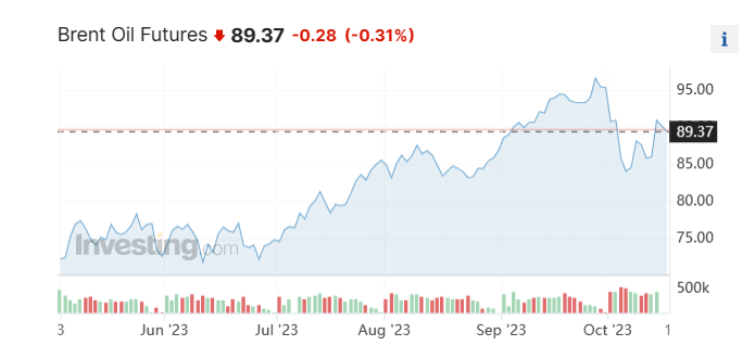美東時間周一(10月16日),WTI原油期貨收跌1.17%,報86.66美元/桶;布倫特原油期貨收跌1.3%,報89.65美元/桶。