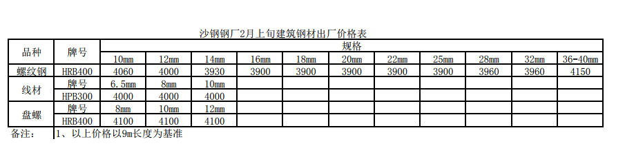 (關鍵字:2019年沙鋼鋼廠2月上旬建筑鋼材出廠價格表)