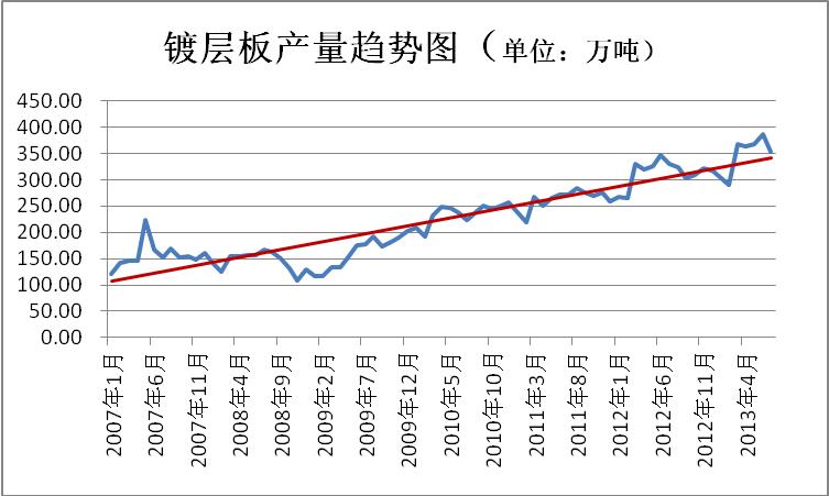 鍍層板7月份產量為353.3萬噸,環比下降8.47%;同比增長6.77%。1-7月份國內共生產鍍層板2431.2萬噸。涂層板7月份產量為61萬噸,環比下降8.82%;同比下降15.63%。1-7月份國內共生產涂層板410.2萬噸。