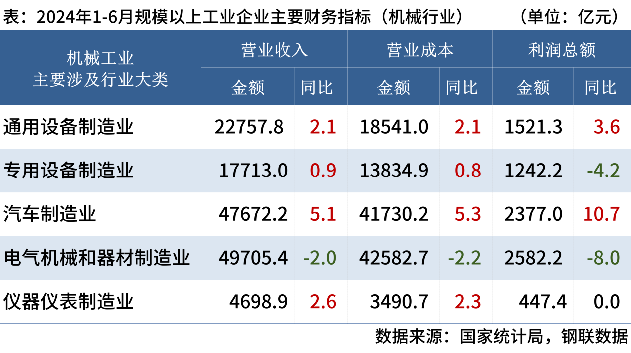 其中,機械工業主要涉及行業大類中,通用設備制造業增長3.6%,專用設備制造業下降4.2%,汽車制造業增長10.7%,電氣機械和器材制造業下降8%,儀器儀表制造業保持不變。