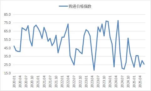 原材料價格低位運行。6月份,受鋼廠生產收緊影響,鋼廠采購活動仍相對謹慎,對原材料價格的支撐力度也有所偏弱。采購量指數為49.9%,環比雖小幅上升0.3個百分點,仍位于50%以下的收縮區間。購進價格指數進一步下滑4.1個百分點至25.6%,連續8個月位于低位,顯示原料市場下行壓力加劇。分品種顯示,鐵礦石因港口庫存水平依舊較高,加上采購持續放緩,價格小幅震蕩;焦炭月內第四輪提降落地,價格進一步走低;廢鋼則因電爐鋼企虧損擴大,需求有所轉弱,價格呈現震蕩筑底特征。整體看,原材料市場在需求疲弱的影響下,價格呈現低位震蕩態勢,上升動力不足。
