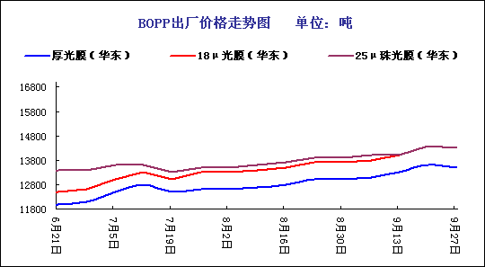 BOPP:9月第四周BOPP膜廠價格走勢圖
