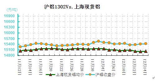 圖二 滬鋁1302現(xiàn)貨鋁價對比走勢圖