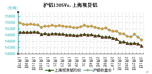 圖二 滬鋁1305VS現(xiàn)貨鋁價對比走勢圖