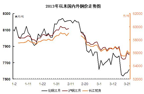 中華商務(wù)網(wǎng)訊:本周銅價(jià)運(yùn)行重心大幅下沉,周內(nèi)呈V型走勢(shì)。周初塞浦路斯危機(jī)爆發(fā),避險(xiǎn)資金推高美元,金屬價(jià)格全面暴挫,隨著塞方局面的穩(wěn)定和美聯(lián)儲(chǔ)方面維持低利率和寬松政策的安慰,加上中美PMI制造業(yè)數(shù)據(jù)的回暖,金屬價(jià)格有所反彈,但仍難回升到上周運(yùn)行平臺(tái)。
