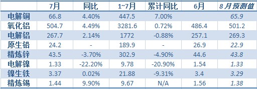 7月中央環(huán)保督查組進(jìn)組8省,云南、河南等多地冶煉廠因此減停產(chǎn)。此外礦和粗鉛的短缺對于原生鉛廠的拖累更加明顯。江西、湖南、云南等主產(chǎn)區(qū)多家鉛廠因原料供給不足減產(chǎn)。環(huán)保檢查將至少持續(xù)到8月中旬,下旬能否開工尚且具有較大不確定性,但是基本可以確定的是爆發(fā)式的復(fù)產(chǎn)基本不可能,預(yù)計(jì)受環(huán)保拖累的地區(qū)產(chǎn)量只降不增。不過因?yàn)?-7月減產(chǎn)企業(yè)已經(jīng)較多,8月產(chǎn)量下降空間已經(jīng)不大。
