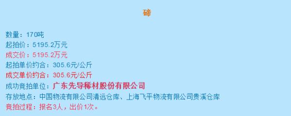 最終,170噸的碲被廣東先導稀材股份有限公司以起拍價成功拍得。