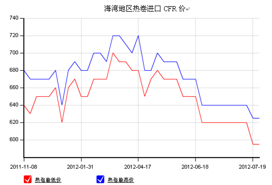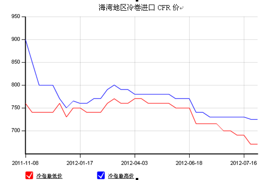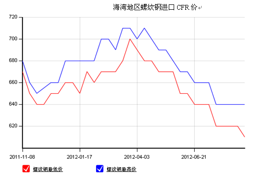 一般情況下,中東北非買家會在齋月開始前一個月左右開始補(bǔ)充庫存,往年會迎來小波價格上漲的趨勢。今年受歐洲債務(wù)危機(jī)影響,全球經(jīng)濟(jì)形勢不好,鋼材需求低迷,鋼價整體水平低于往年。在今年6月中下旬海灣地區(qū)鋼材價格止跌維穩(wěn),但時間非常短暫,鋼價在6月末又開始下跌。