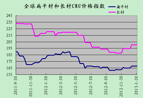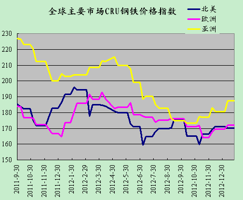 (關鍵字:CRU 國際鋼鐵價格指數(shù) 歐洲 北美 亞洲)