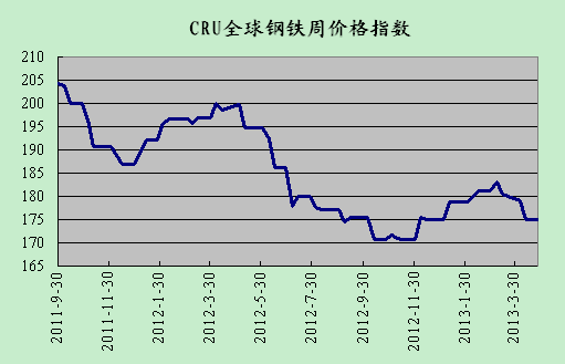上周國際鋼市較前一周平穩運行。CRU國際鋼價綜合指數為175,CRU扁平材指數為165.3,CRU長材指數為194.5,均維持前一周水平。其中,歐洲市場CRU價格指數為171,北美市場CRU價格指數為165.3,亞洲市場CRU價格指數為183。
