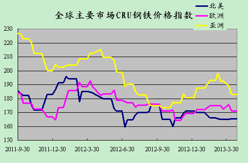 (關鍵字:CRU 國際鋼鐵價格指數 歐洲 北美 亞洲)