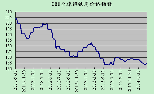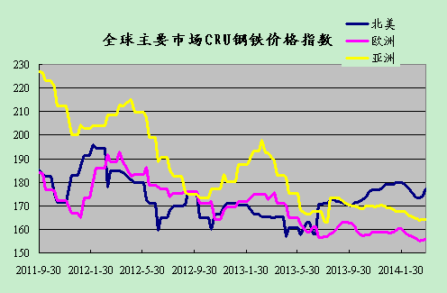 上周國際鋼市繼續繼續整體走高。CRU國際鋼價綜合指數為164.75,CRU扁平材指數為158.77,CRU長材指數為178.45。其中北美市場CRU價格指數為177.17,歐洲市場CRU價格指數為155.65,亞洲市場CRU價格指數為164.29。