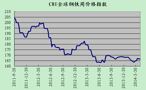 上周國際鋼市整體走低。CRU國際鋼價綜合指數(shù)為166.64,CRU扁平材指數(shù)為160.84,CRU長材指數(shù)為180.13。北美市場CRU價格指數(shù)為183.46,歐洲市場CRU價格指數(shù)為155.21,亞洲市場CRU價格指數(shù)為166.04。