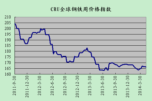 上周?chē)?guó)際鋼市整體走低。CRU國(guó)際鋼價(jià)綜合指數(shù)為166.34,CRU扁平材指數(shù)為160.63,CRU長(zhǎng)材指數(shù)為179.72。北美市場(chǎng)CRU價(jià)格指數(shù)為183.81,歐洲市場(chǎng)CRU價(jià)格指數(shù)為155.99,亞洲市場(chǎng)CRU價(jià)格指數(shù)為164.91。