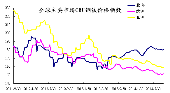 上周國際鋼市整體走高。CRU國際鋼價綜合指數為161.53,CRU扁平材指數為156.19,CRU長材指數為174.23。北美市場CRU價格指數為180.69,歐洲市場CRU價格指數為151.36,亞洲市場CRU價格指數為159.41。