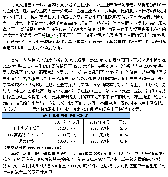 時間又過去了一周,國內尿素價格雖已止漲,但從企業產銷平衡來看,降價的預期似乎有些渺茫。這不禁令業內人士十分詫異,也隨之出現了不少疑問,比如北方行情結束卻沒見企業銷售壓力;經銷商畏懼風險卻仍在追高;復合肥廠依舊采購高價尿素作為原料! |