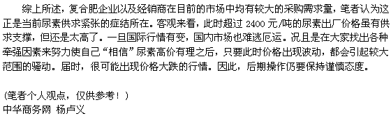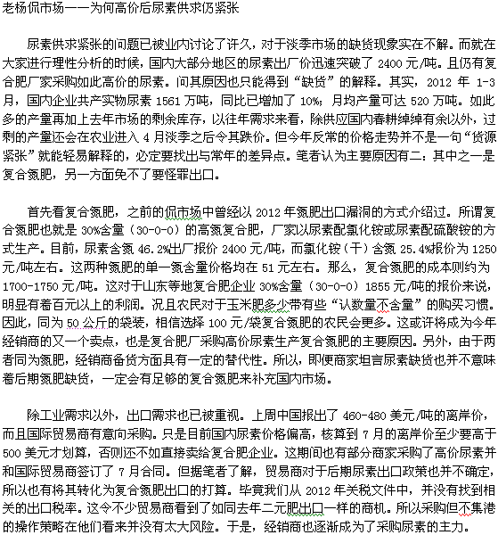 為何高價后尿素供求仍緊張