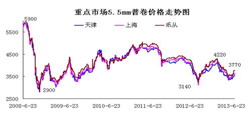 需要說明的是在今年春節過后的鋼材價格長期回落中,鋼貿商為控制風險,不斷減少庫存,使鋼材社會庫存一直延續小幅回落趨勢。鋼廠為穩定市場資源供需平衡,盡管面臨產能過剩的壓力,還是在上半年平均日產水平215萬噸的基礎上,顯示了產量小幅減少的變化趨勢,鋼廠庫存增加僅僅幾十萬噸。市場供需關系的穩定也是這次鋼材價格能夠反彈的重要支撐條件。這也說明只要鋼廠控制產能釋放,按需組織生產,市場價格和鋼廠盈利都會有提高的機會。