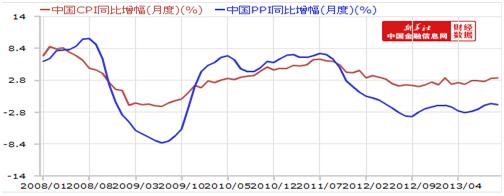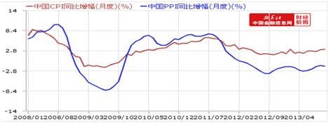9月PPI同比下降1.3%,降幅收窄0.3個百分點。2013年10月份全國工業生產者出廠價格同比下降1.5%,11月PPI同比下降1.4% 。這表明大宗工業品出廠價格沒有走出低位震蕩的態勢。