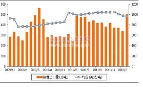 從下面鋼材進出口走勢圖可以看出,從去年四月開始我國鋼材出口已經連續11個月呈現回落趨勢。